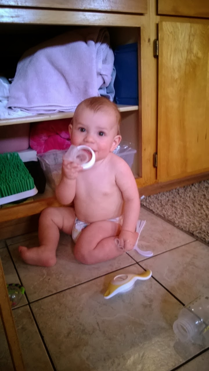 Quinn turned 10 months yesterday! I can't believe how fast time has gone by. It seems like just yesterday he was just a little infant. Now he sleeps through the night, walks around the room, and eats a wide variety of foods. He loves his blankie, running around without clothes, carrying around a can of soup, looking through his books, and playing on the stairs. He still gets a huge smile on his face when Chris gets home work, and Leeroy has to take high ground to get away from him. It has been a great ten months, and I look forward to watching our new little baby following in Quinn's steps. Becoming a mom has been the greatest blessing in my life.